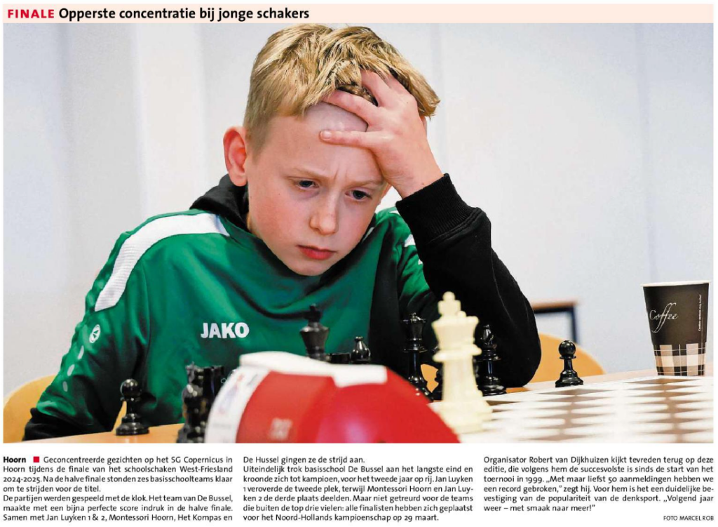 Op woensdag 5 februari streden de 20 beste schoolteams die zich via de eerste ronde of de finale van de reserveteams hadden geplaatst tegen elkaar in de halve finale van de schoolschaakcompetitie van West-Friesland 2024-2025. Dit jaar waren we te gast op de Copernicus
